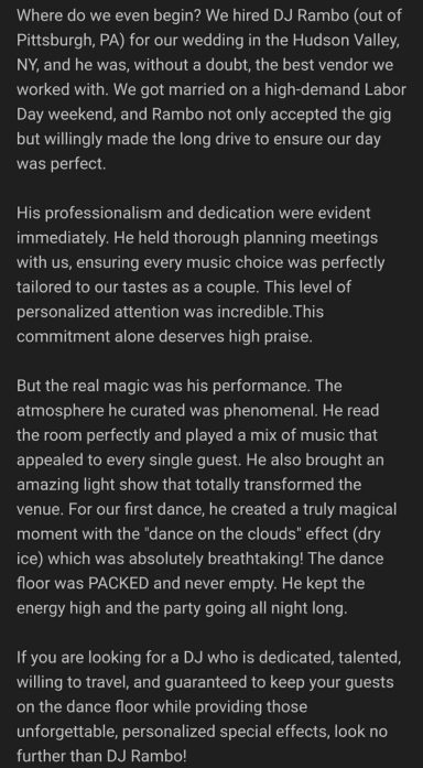 DJ Rambo specializes in providing top-notch entertainment services for a variety of events guarantee a night to remember.